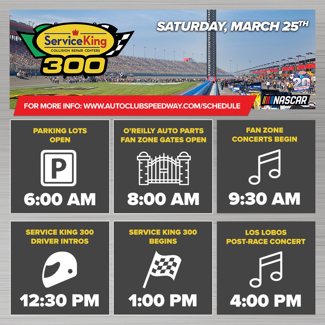Nascar's friday schedule at auto club speedway originally appeared on nbcsports.com. Последние твиты от auto club speedway (@acsupdates). Please check below for the complete schedule of events. Nascar begins its race weekend at auto club speedway today. This is the first time atlanta has hosted two races, while martinsville will host two races for the first time.