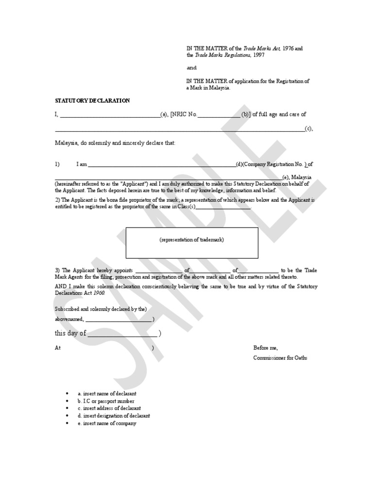 Related : Statutory Declaration Act 1960 : You must also use an a statutory declaration is a written statement that you (the declarant) sign and declare to be true and correct in the presence of an authorised witness..