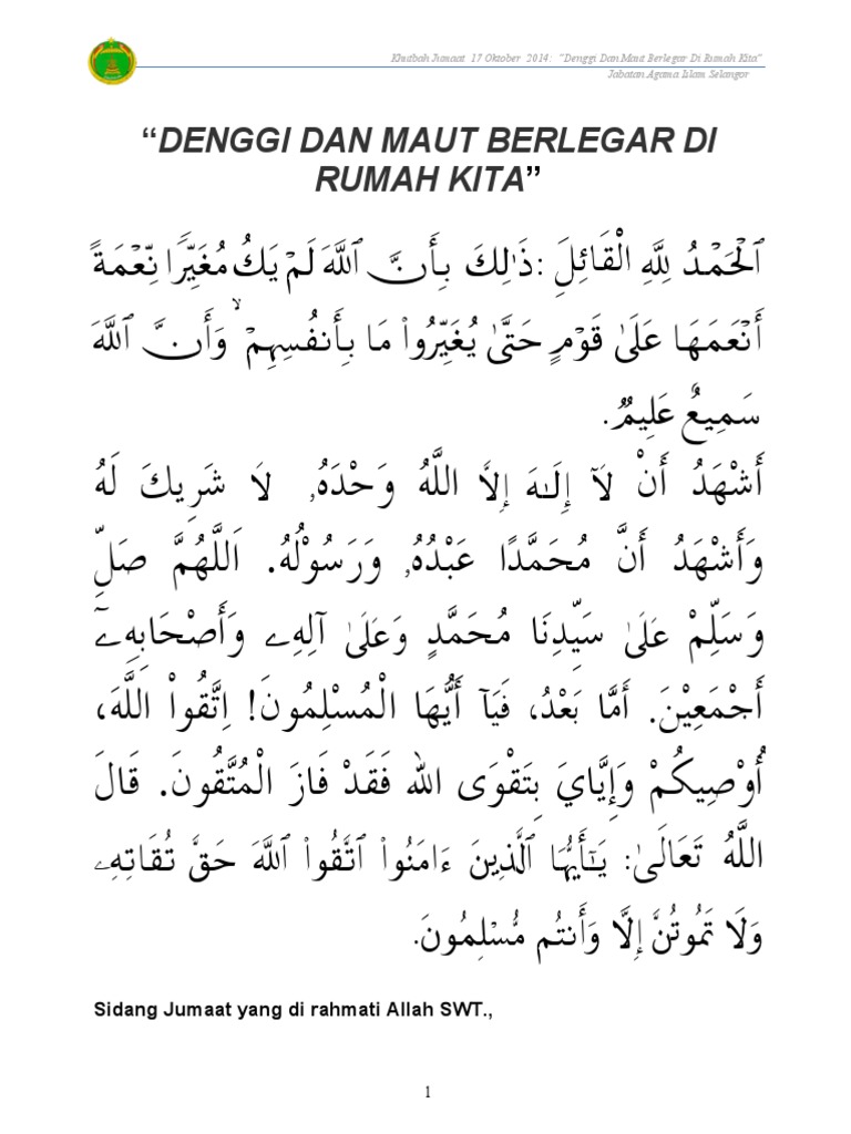 Khutbah jumaat 26.03.2021 l 12 sya'ban 1442h jauhi zina jabatan agama islam selangor 8 khutbah kedua نَم انَقَ 4َ 2َوَ ،نَيْم ل سُْلْْا نَم انَلَعَجَ يْ 1 لاا ه لال /ُمْحَلْاَ ِت ابَي ا ِ. Mulai bulan februari 2021, terdapat 2 edisi khutbah jumaat yang disediakan dalam bentuk tulisan rumi dan jawi. Teks khutbah jumaat oktober 2015. Ia adalah bukti kekuasaan dan kebesaran allah swt. Bil tarikh tajuk khutbah versi khutbah fail khutbah.